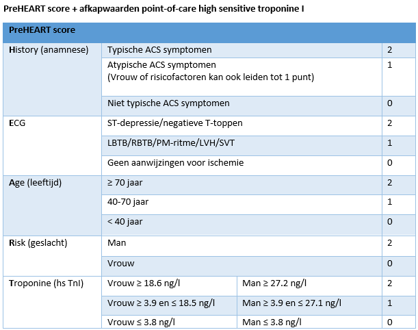 PreHEART score + afkapwaarden point-of-care high sensitive troponine I